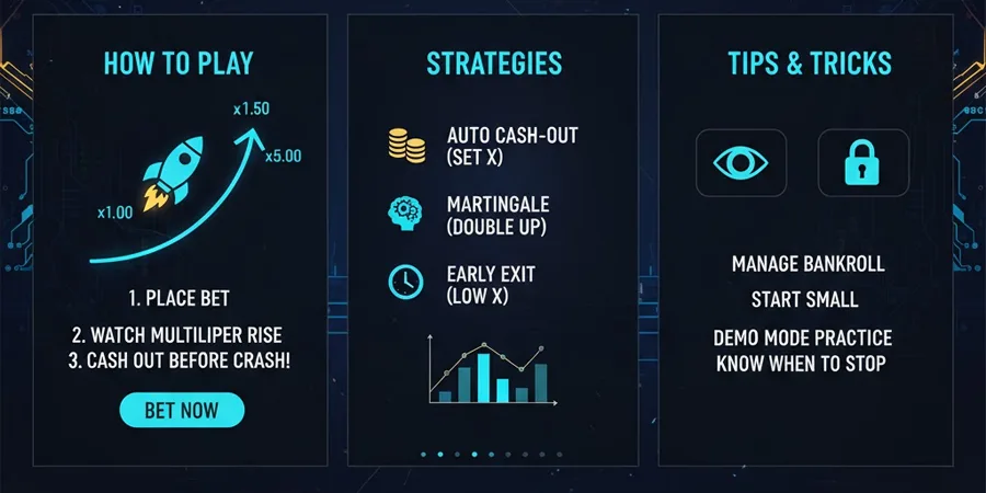 - Play Early Rounds: Cash out around 1.5x–2x multipliers at the start.
